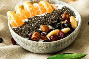 When compared to eating chia-free yogurt, consuming 0.33 ounces (7 grams) or 0.5 ounces (14 grams) of chia seeds combined with yogurt for breakfast was shown to boost feelings of fullness and lower food consumption in the short term. The research had 24 individuals.